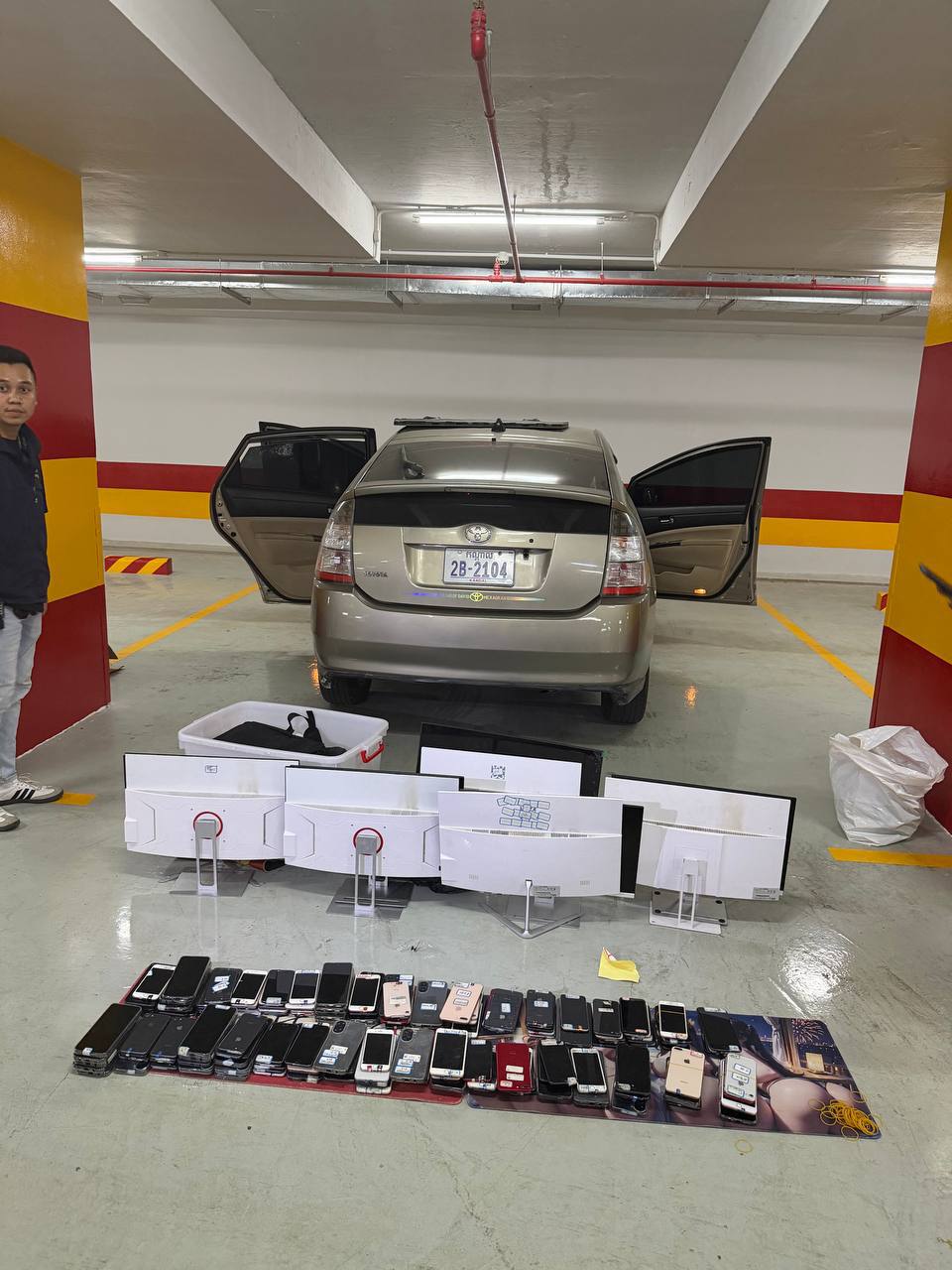 ក្នុងប្រតិបត្តិការនេះសមត្ថកិច្ចបានរកឃើញសម្ភារៈបច្ចេកទេសជាច្រើនដែលបម្រើឱ្យសកម្មភាពឆបោក រួមមានទូរសព្ទដៃចំនួន ៦១៥ គ្រឿង, Laptop ១៤០ គ្រឿង, All in One ៣១ គ្រឿង, Monitor ៦ គ្រឿង និង CPU ៣ គ្រឿង។