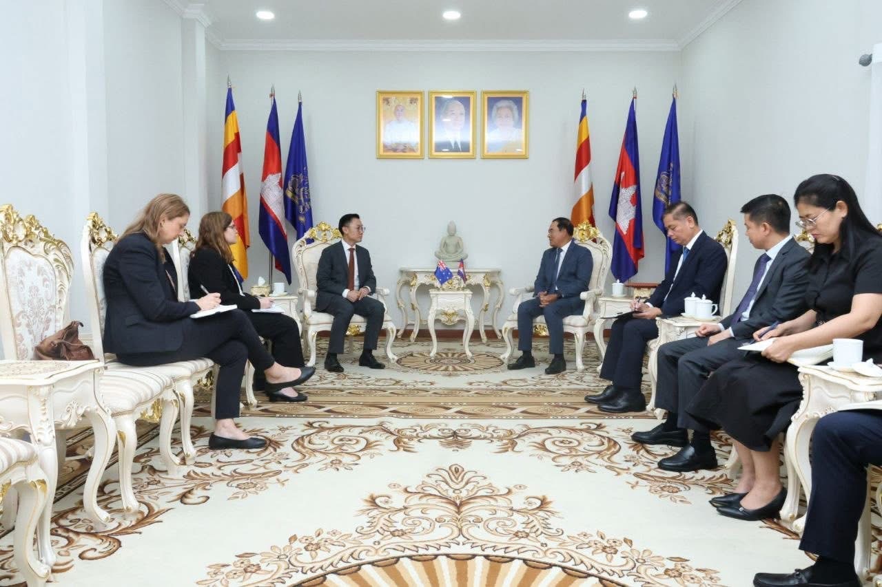 ក្នុងជំនួបពិភាក្សាគ្នា ស្តីពីការអនុវត្តផែនការភាពជាដៃគូអភិវឌ្ឍន៍កម្ពុជា-អូស្រ្តាលី និងកិច្ចសហប្រតិបត្តិការបន្តគាំទ្រវិស័យសកម្មភាពមីននៅកម្ពុជា លោកបណ្ឌិត លី ធុជ ទេសរដ្ឋមន្ត្រី អនុប្រធានទី១ អាជ្ញាធរមីន នាព្រឹកថ្ងៃទី២៤ ខែមេសា ឆ្នាំ២០២៦ នៅទីស្នាក់ការអាជ្ញាធរមីន លោក Derek Yip ឯកអគ្គរដ្ឋទូតអូស្រ្តាលីប្រចាំនៅកម្ពុជា បានបញ្ជាក់ពីគាំទ្ររបស់រដ្ឋាភិបាលអូស្រ្តាលី ដល់កិច្ចការបោសសម្អាតមីន និងការគិតគូរជួយដល់ជនរងគ្រោះថ្នាក់និងការស្តារកាយសម្បទា នៅប្រទេសកម្ពុជា។