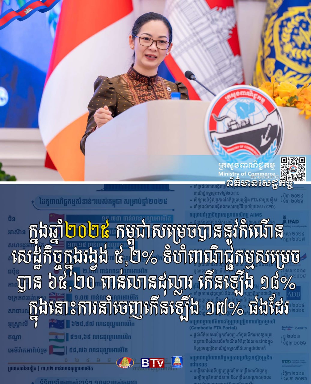 ឆ្នាំ២០២៥ កម្ពុជាមានកំណើនសេដ្ឋកិច្ចក្នុងរង្វង់ជាង៥% ទំហំពាណិជ្ជកម្ម ៦៥