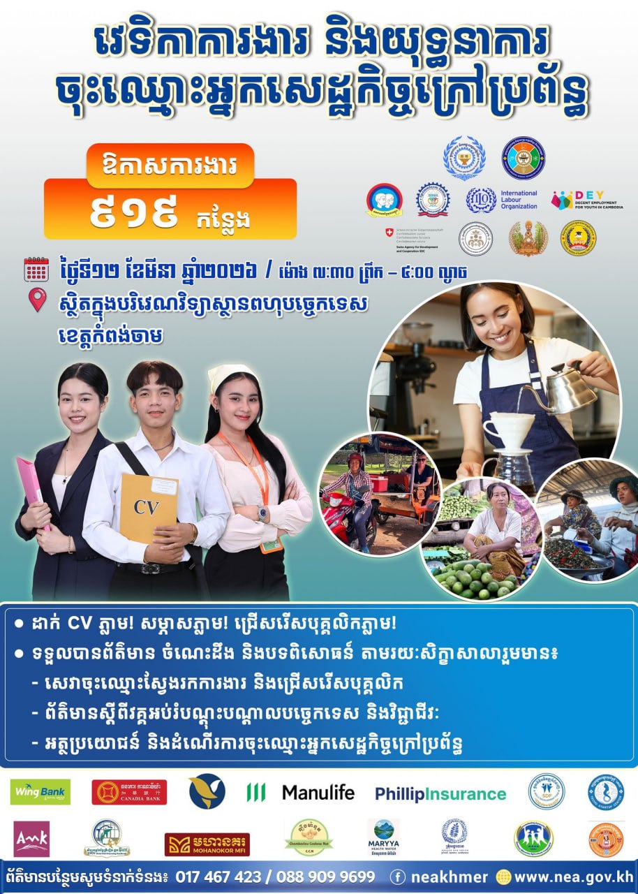 ឱកាសការងារជិត ១ពាន់កន្លែងនៅខេត្តកំពង់ចាម