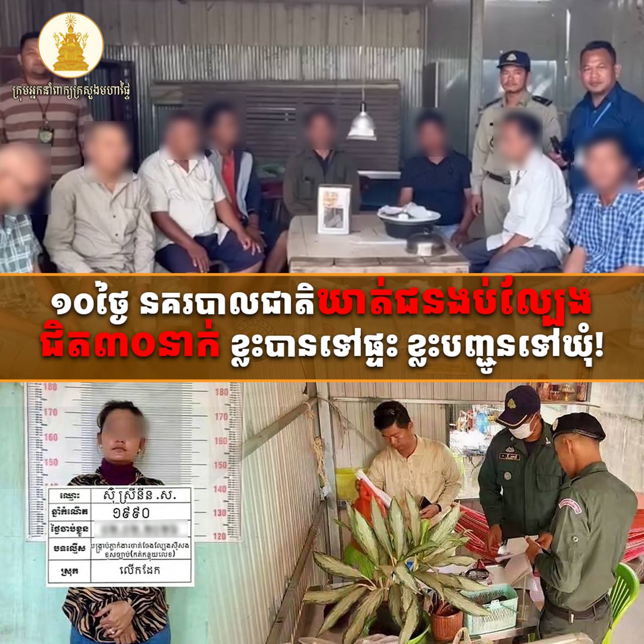 ១០ថ្ងៃ នគរបាលជាតិឃាត់ជនងប់ល្បែងជិត៣០នាក់ ខ្លះបានទៅផ្ទះ ខ្លះបញ្ជូនទៅឃុំ