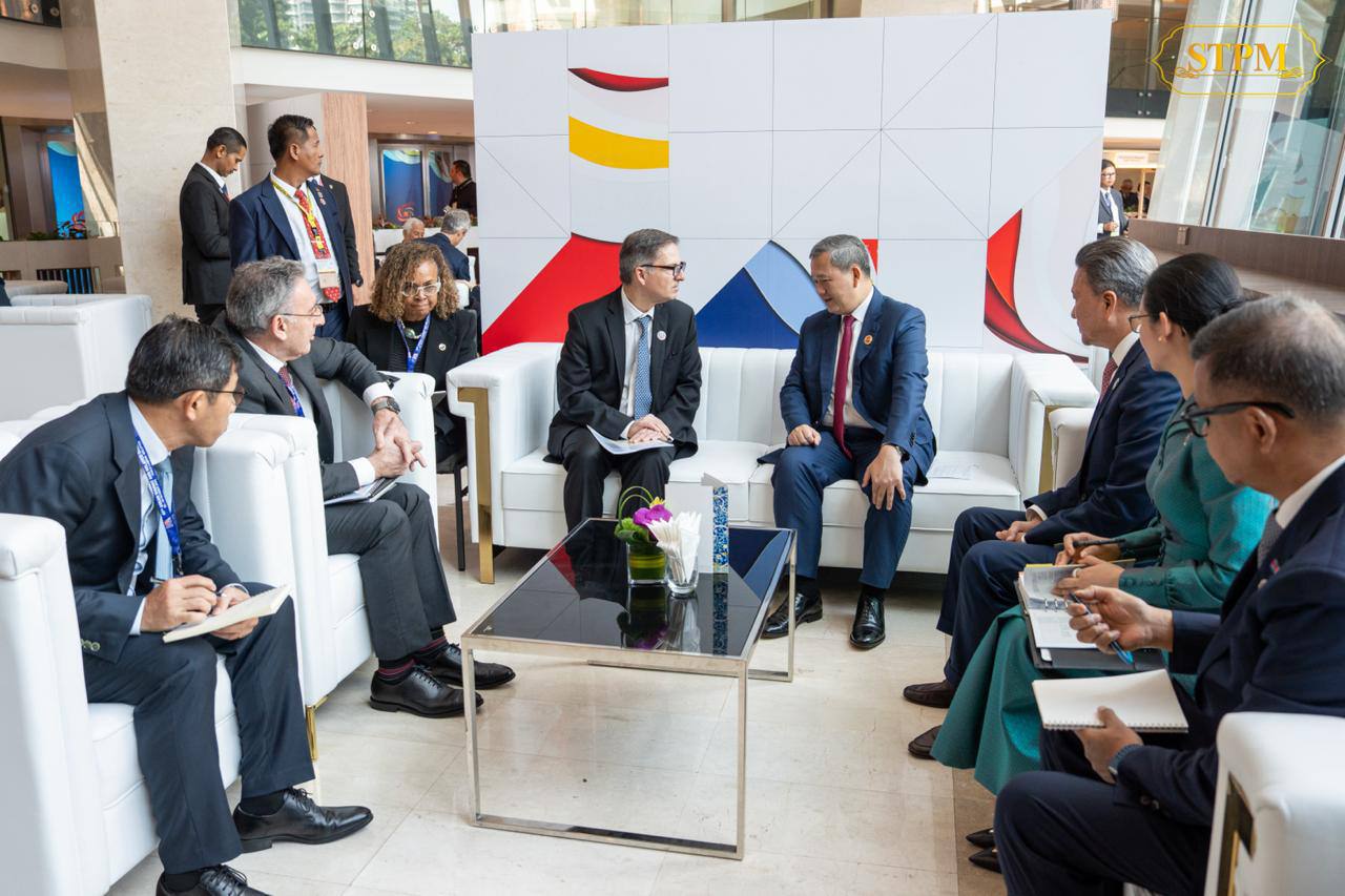 ជាការឆ្លើយតប, សម្ដេចបវរធិបតី បានគូសបញ្ជាក់ថា កម្ពុជាបានដាក់ចេញ និងកំពុងអនុវត្តនូវយុទ្ធសាស្ត្របញ្ចកោណ-ដំណាក់កាលទី១ ដែលផ្ដោតសំខាន់ ជាអាទិ៍លើ៖ ១. វិស័យអប់រំ សម្រាប់អភិវឌ្ឍធនធានមនុស្សប្រកបដោយគុណភាព និងគុណវុឌ្ឍិគ្រប់គ្រាន់ សំដៅជំរុញផលិតភាពការងារ។ ២. វិស័យហេដ្ឋារចនាសម្ព័ន្ធ សម្រាប់បម្រើសកម្មភាពសេដ្ឋកិច្ច ជាពិសេសការលើកស្ទួយវិស័យដឹកជញ្ជូន និងភស្តុភារ។ ៣. ការធានាបាននូវការផ្គត់ផ្គង់ថាមពលកកើតឡើងវិញ ដែលបច្ចុប្បន្ន កម្ពុជាប្រើប្រាស់ប្រភពថាមពលកកើតឡើងវិញចំនួន ៦២% និងប្ដេជ្ញាចិត្តក្នុងការបង្កើនឱ្យបាន ៧០% នៅឆ្នាំ២០៣០។ ៤. បច្ចេកវិទ្យា និងឌីជីថលូបនីយកម្ម ដែលអនុញ្ញាតឱ្យកម្ពុជាអាចគ្រប់គ្រងបាននូវហានិភ័យ ក៏ដូចជាការជំរុញសកម្មភាពសេដ្ឋកិច្ចឱ្យកាន់តែល្អប្រសើរជាមួយនឹងប្រសិទ្ធភាពខ្ពស់ ផលិតភាពខ្ពស់ និងគុណភាពខ្ពស់ ៥. ការធានាបាននូវកំណើន និងការអភិវឌ្ឍប្រកបដោយចីរភាព។