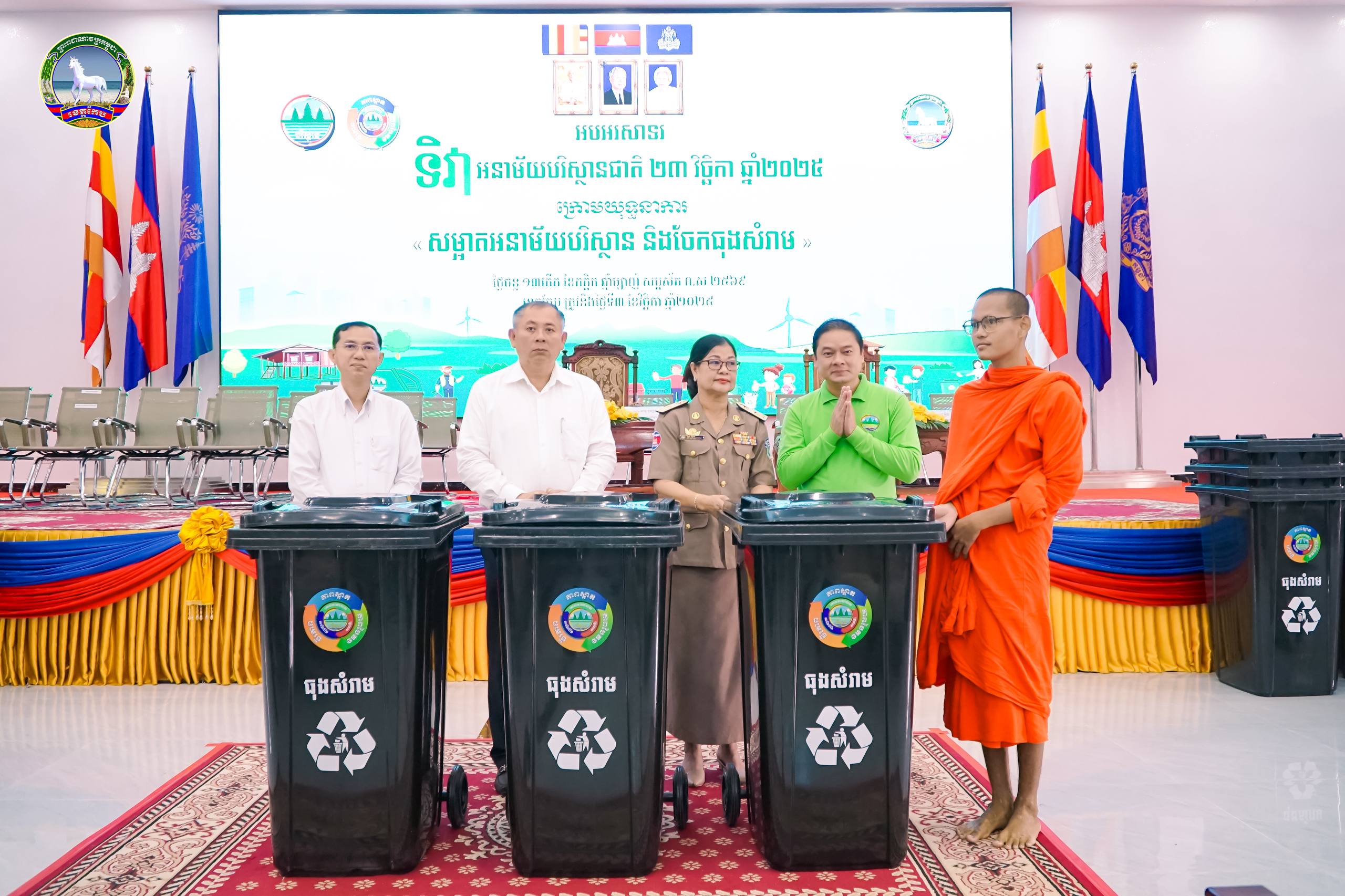 ក្នុងឱកាសនោះ រដ្ឋបាលខេត្តកែប បានថ្លែងអំណរគុណដល់ ឯកឧត្តមបណ្ឌិត អ៊ាង សុផល្លែត រដ្ឋមន្រ្តីក្រសួងបរិស្ថាន និងថ្នាក់ដឹកនាំក្រសួងបរិស្ថាន ដែលបានប្រគល់សម្ភារគ្រប់គ្រងសំរាម សំណល់រឹង រួមមានធុងសំរាមក្នុងឱកាសទិវាអនាម័យបរិស្ថានជាតិ ២៣វិច្ឆិកា នាឆ្នាំនេះ ជូនដល់សាលារៀន វត្តអារាម មន្ទីរពេទ្យ មណ្ឌលសុខភាព ព្រមទាំងសាលាឃុំ-សង្កាត់ទូទាំងខេត្តកែប ដើម្បីបង្កើនភាពស្អាត និងអនាម័យ កាន់តែទាក់ទាញទេសចរណ៍មកទស្សនាខេត្តកែប ព្រមទាំងការរស់នៅស្អាត ភូមិឋានស្អាត សុខភាពល្អរបស់ប្រជាពលរដ្ឋនៅតាមមូលដ្ឋាន ដែលជាផ្នែកមួយនៃការផ្លាស់ប្ដូរទម្លាប់ និងការយល់ដឹងរបស់ប្រជាពលរដ្ឋអំពី ភាពស្អាត សុខភាព និងការរស់នៅប្រកបដោយអនាម័យ ការរក្សាទីក្រុង ឬ ភូមិឋានឱ្យស្អាត គឺជាការរួមចំណែករបស់មនុស្សគ្រប់រូប។