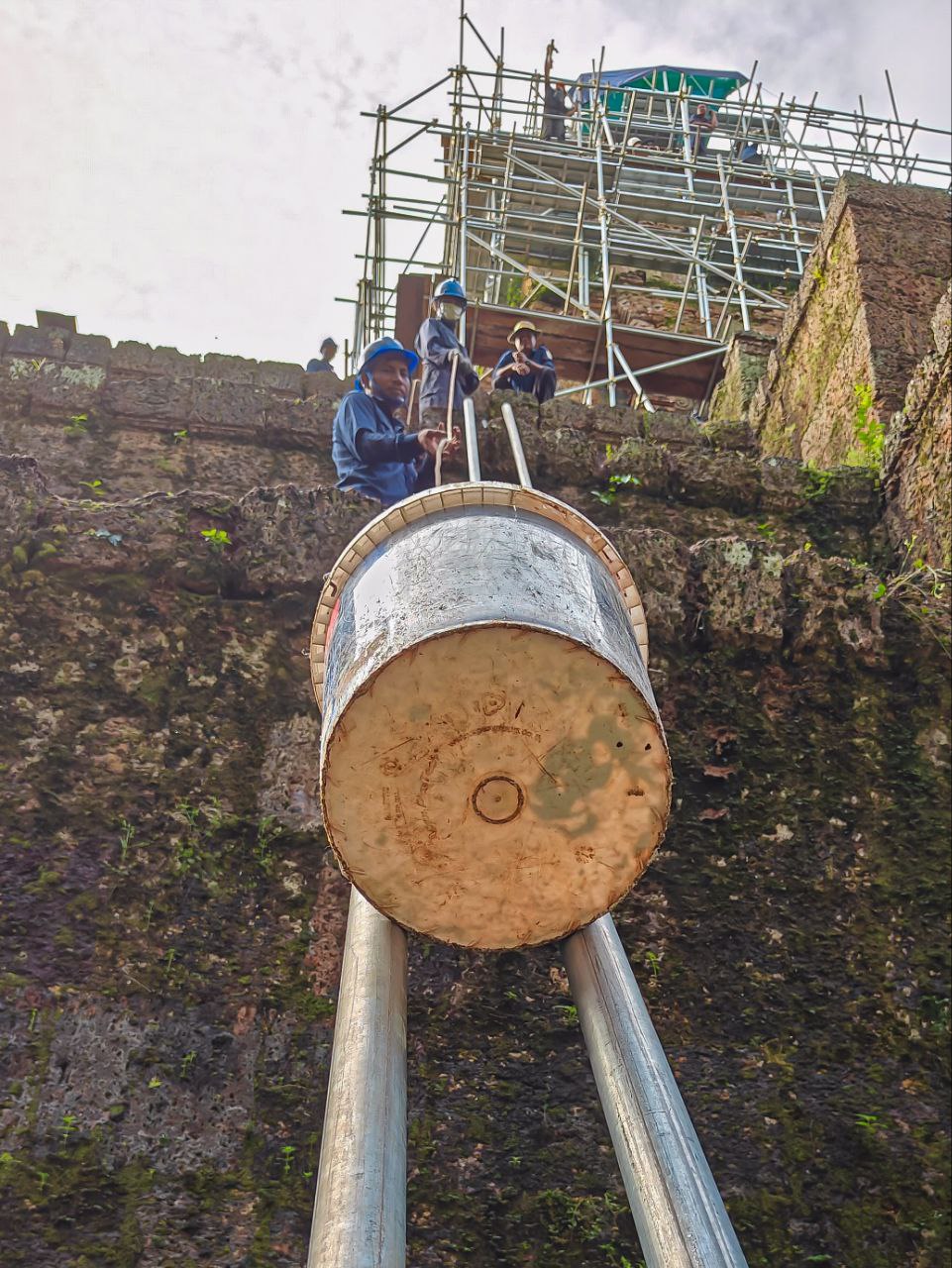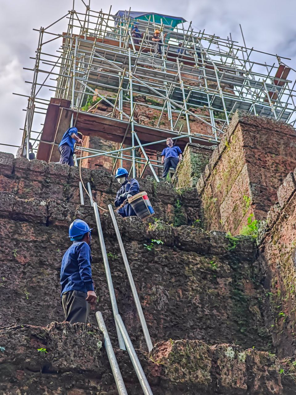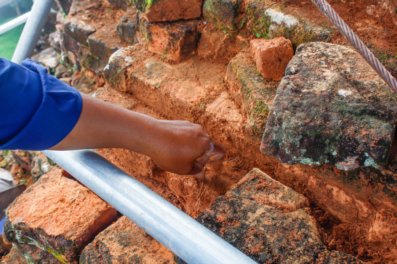 លោក ពុទ្ធ សុទ្ធ បន្ថែមថា កន្លែងហានិភ័យខ្លាំងនៅក្នុងប្រាសាទនេះ គឺនៅផ្នែកដំបូល និងផ្នែកខ្លះនៃជញ្ជាំង។ ដោយសារជាប្រាសាទខ្ពស់ ដូច្នេះគេត្រូវប្រើកម្លាំងពលករច្រើន ដើម្បីជញ្ជូនសម្ភារៈផ្សេងៗឡើងលើប្រាសាទ ហើយត្រូវសង់រន្ទា ដើម្បីរៀបចំទល់ទ្រ ទប់លំនឹងកំពូលប្រាសាទនេះ។