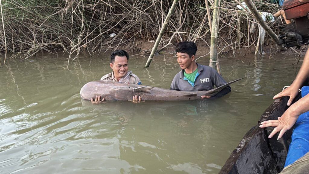 បន្ទាប់ពីកំណត់អត្តសញ្ញាណរួចរាល់ ក្រុមការងារ និងមន្ត្រីជំនាញជលផល បានលែងត្រីរាជនេះ ចូលក្នុងទន្លេមេគង្គវិញ៕