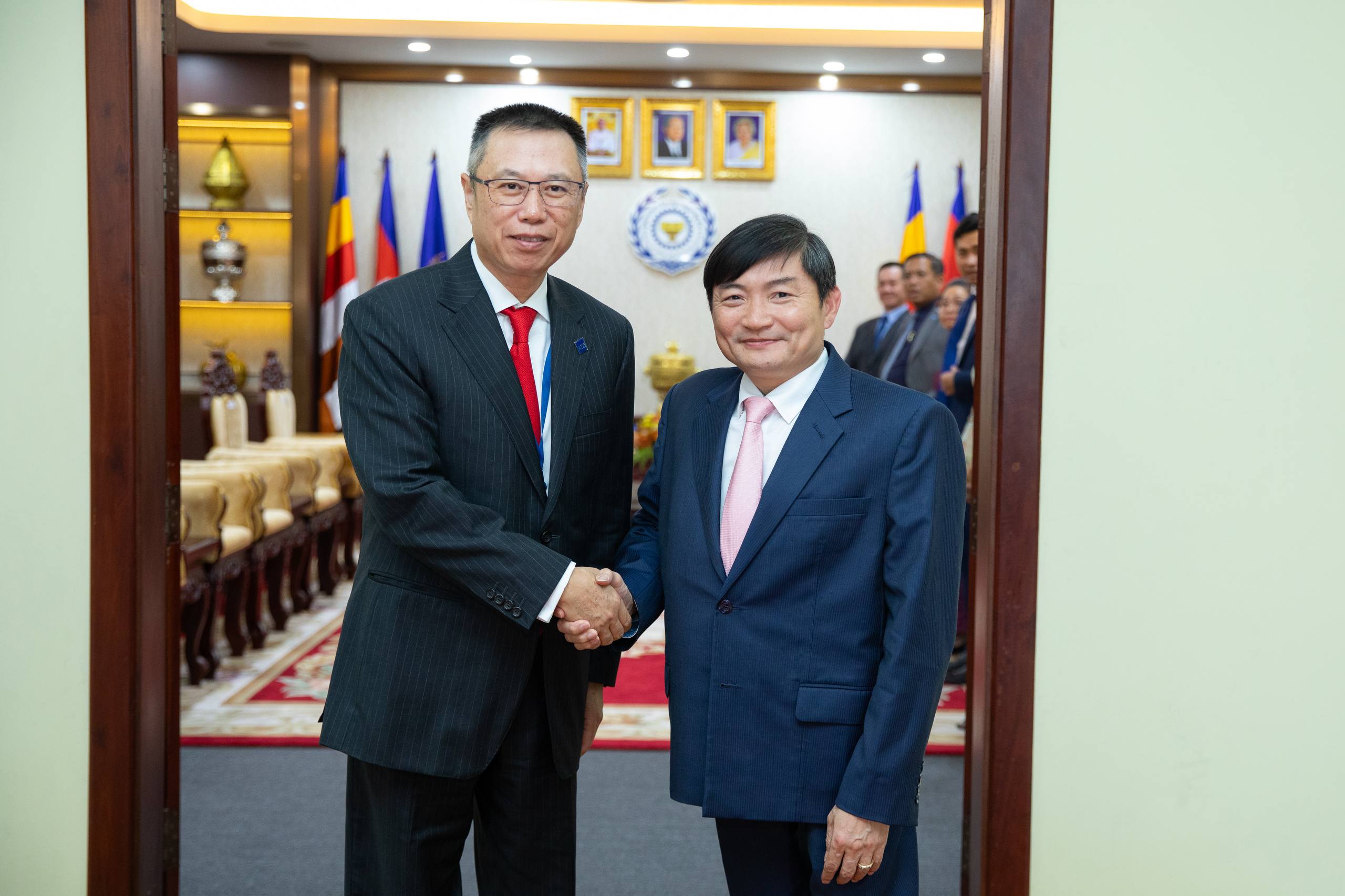 ការពង្រឹងកិច្ចសហការលើកកម្ពស់វិស័យ TVET នេះធ្វើឡើងក្នុងជំនួបសម្ដែងការគួរសម និងពិភាក្សាការងារជាមួយលោក ហេង សួរ រដ្ឋមន្ត្រីក្រសួងការងារ និងបណ្ដុះបណ្ដាលវិជ្ជាជីវៈ និងលោក Nianshan Zhang អគ្គនាយកនៃនាយកដ្ឋានប្រចាំតំបន់អាស៊ីអាគ្នេយ៍នៃធនាគារអភិវឌ្ឍន៍អាស៊ី (ADB) កាលពីថ្ងៃទី២៥ ខែកុម្ភៈ ឆ្នាំ២០២៦ នៅទីស្តីការក្រសួង ដើម្បីពិនិត្យមើលវឌ្ឍនភាព និងឱកាសសំខាន់ៗ ក្នុងការពង្រឹង និងពង្រីកកិច្ចសហការក្នុងវិស័យអប់រំបណ្តុះបណ្តាលបច្ចេកទេស និងវិជ្ជាជីវៈ (TVET) និងការអភិវឌ្ឍជំនាញនៅកម្ពុជា។
