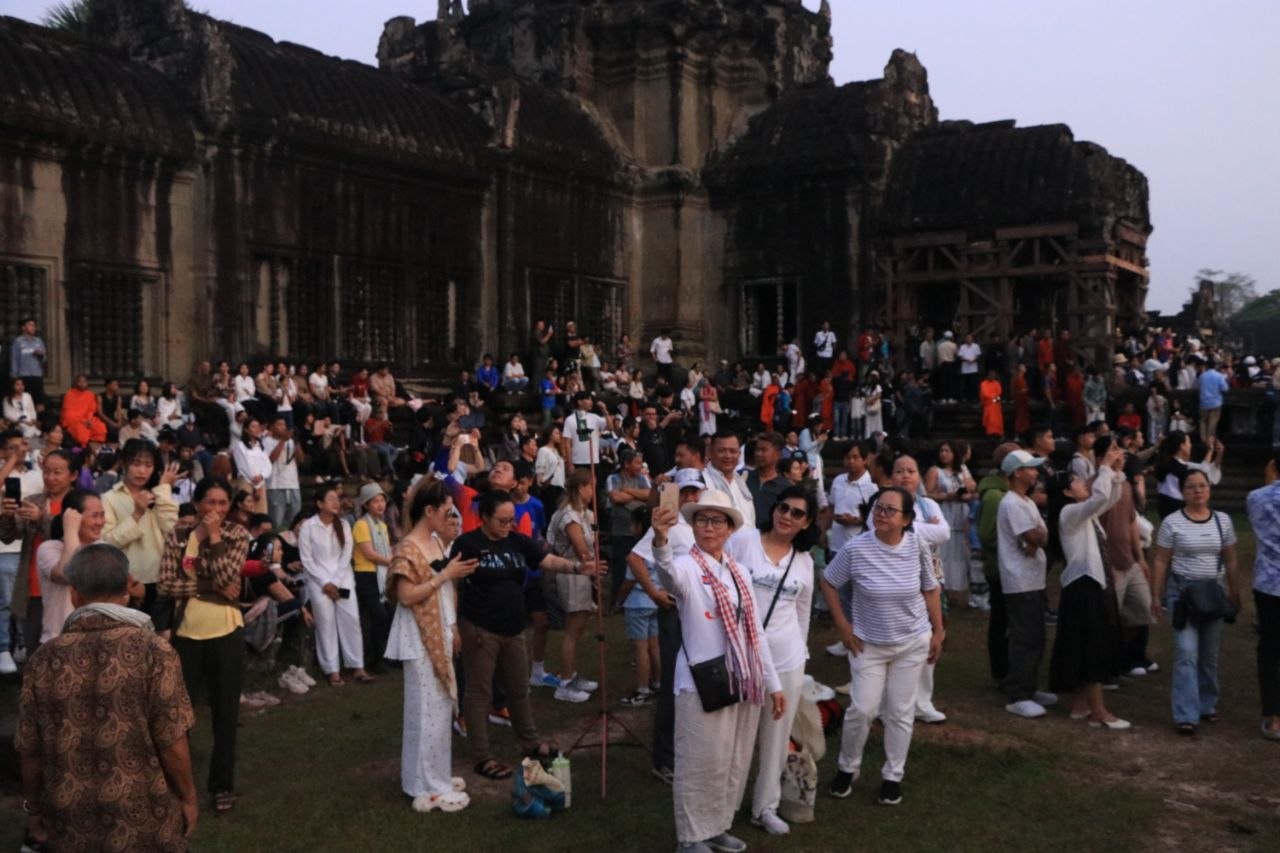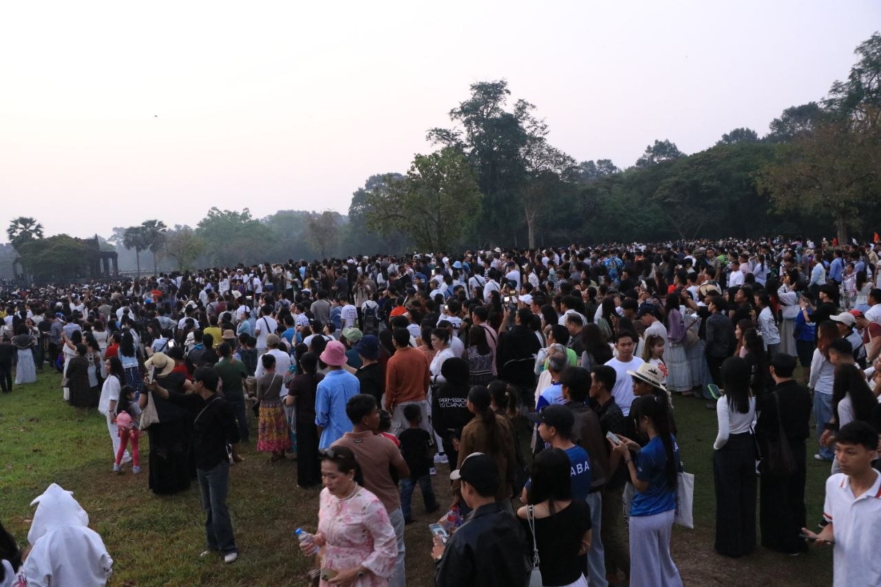 សៀមរាបៈ កាលពីព្រលឹមស្រាងៗថ្ងៃទី២២ ខែមីនា ឆ្នាំ២០២៦ ភ្ញៀវទេសចរជាតិ និងអន្តរជាតិជាង ៣ម៉ឺននាក់ បានធ្វើដំណើរមកពីគ្រប់ទិសទី ដើម្បីទស្សនាព្រឹត្តិការណ៍សមរាត្រី (Equinox) ដែលជាទិដ្ឋភាពព្រះសូរិយារះឡើងចំកំពូលប្រាង្គកណ្តាលនៃប្រាសាទអង្គរវត្តយ៉ាងស្រស់ត្រកាលបំផុត។ នេះជាភស្តុតាងដែលបង្ហាញពីចំណេះដឹងផ្នែកតារាសាស្ត្រ និងស្ថាបត្យកម្មដ៏ខ្ពង់ខ្ពស់នៃអាណាចក្រខ្មែរ។